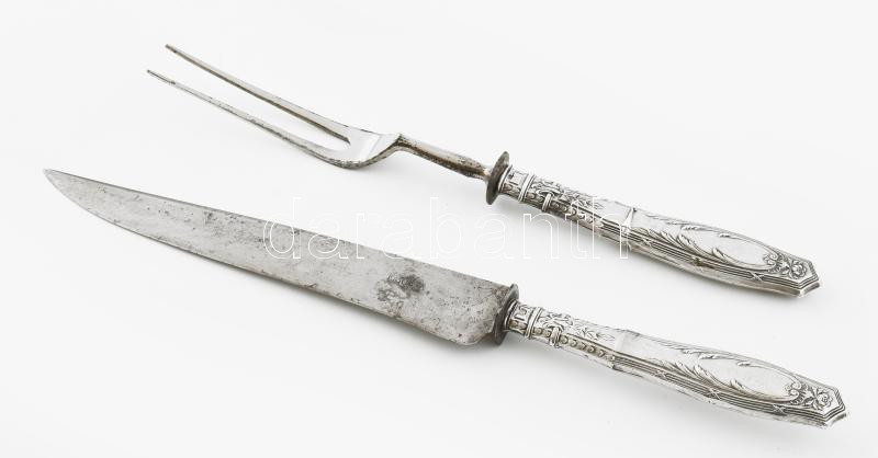 Beschreibung: Ezüst (Ag) nyelű art deco hússzervírozó kanál és villa, jelzéssel, h: 27-31 cm, bruttó: 152 g