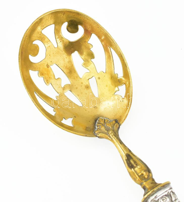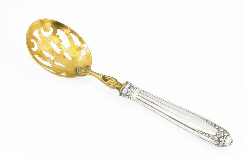 Ezüst (Ag) nyelű cukorszóró kanál, h: 16,5 cm, 38 g https://www.darabanth.com/de/444-Fernauktion/444.0/Juwellen-und-Kunstobjekte-aus-Edelmetall/Juwellen-und-Kunstobjekte-aus-Edelmetall~1500028/Ezust-Ag-nyelu-cukorszoro-kanal-h-16-5-cm-38-g~II2929644