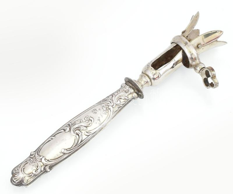Beschreibung: Ezüst (Ag) nyelű pulykacomb fogó, jelzéssel, h: 21 cm, bruttó: 105 g