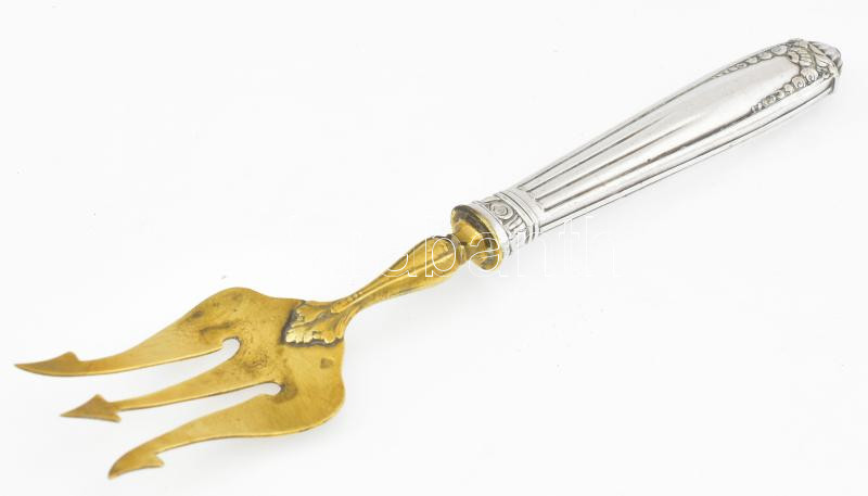 Beschreibung: Ezüst (Ag) nyelű villa, jelzéssel, h: 17 cm, bruttó: 35 g