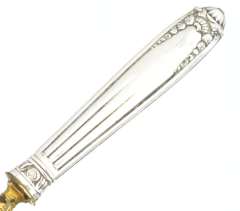 Ezüst (Ag) nyelű villa, jelzéssel, h: 17 cm, bruttó: 35 g https://www.darabanth.com/de/444-Fernauktion/444.0/Juwellen-und-Kunstobjekte-aus-Edelmetall/Juwellen-und-Kunstobjekte-aus-Edelmetall~1500028/Ezust-Ag-nyelu-villa-jelzessel-h-17-cm-brutto-35-g~II2929791
