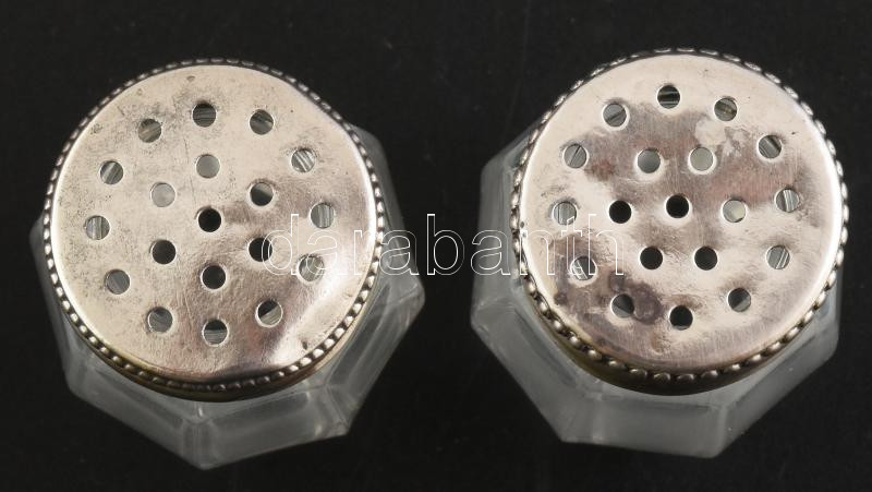 Ezüst (Ag) tetejű só- és borsszóró, jelzett, m: 4 cm https://www.darabanth.com/de/444-Fernauktion/444.0/Juwellen-und-Kunstobjekte-aus-Edelmetall/Juwellen-und-Kunstobjekte-aus-Edelmetall~1500028/Ezust-Ag-teteju-so-es-borsszoro-jelzett-m-4-cm~II2914360