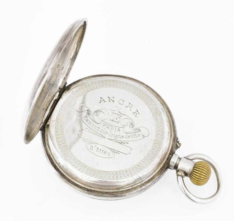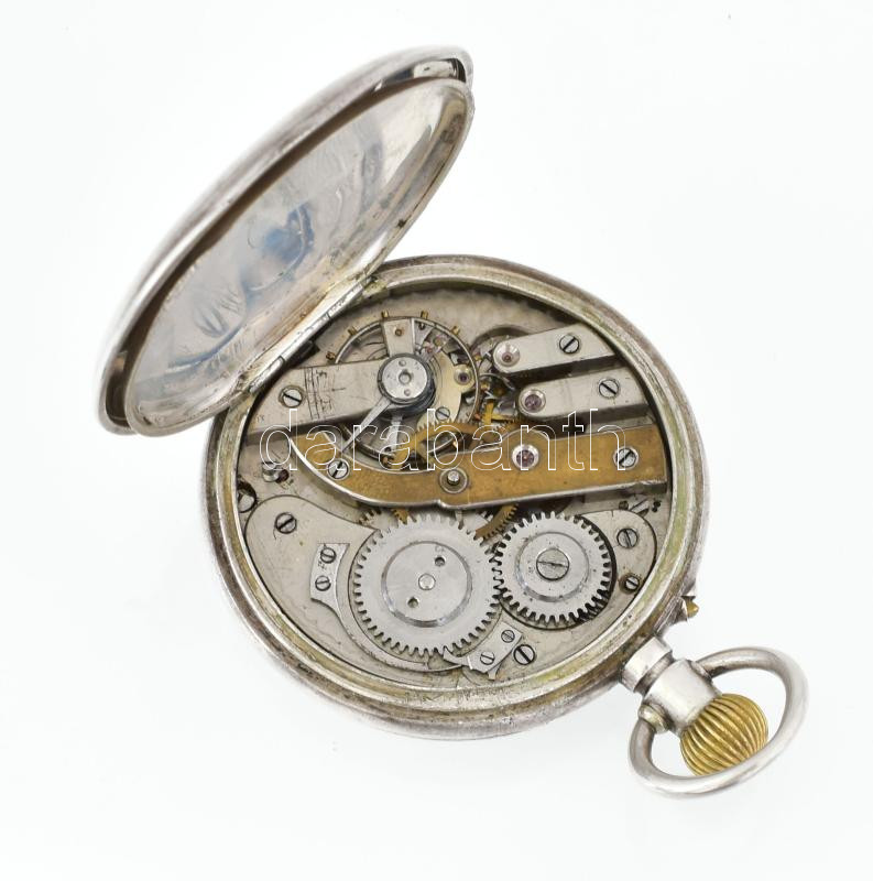 Ezüst(Ag) Remontoir zsebóra, kissé sérült számlap, nem jár, jelzett, d... https://www.darabanth.com/de/444-Fernauktion/444.0/Juwellen-und-Kunstobjekte-aus-Edelmetall/Juwellen-und-Kunstobjekte-aus-Edelmetall~1500028/EzustAg-Remontoir-zsebora-kisse-serult-szamlap-nem-jar-jelzett-d-5-cm-brutto-87-4-g~II2927807