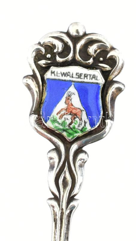 Beschreibung: Ezüst(Ag) "Walsertal" zománcozott címeres kanál, jelzett, h: 10,1 cm, bruttó: 8,7 g