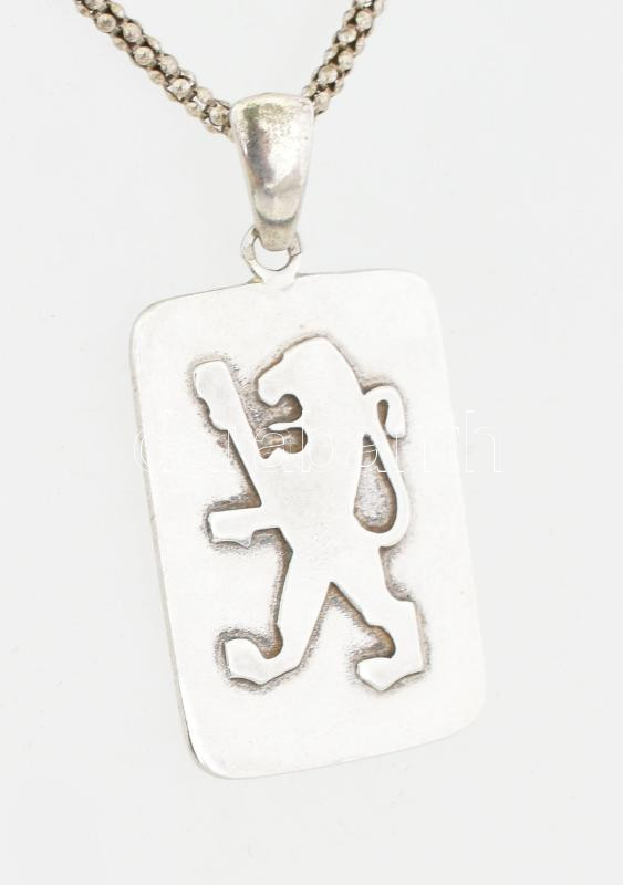 Beschreibung: Ezüst(Ag) fantáziamintás nyaklánc oroszlános medállal, jelzett, h: 45 cm, 4,5×2,3 cm, nettó: 12,4 g