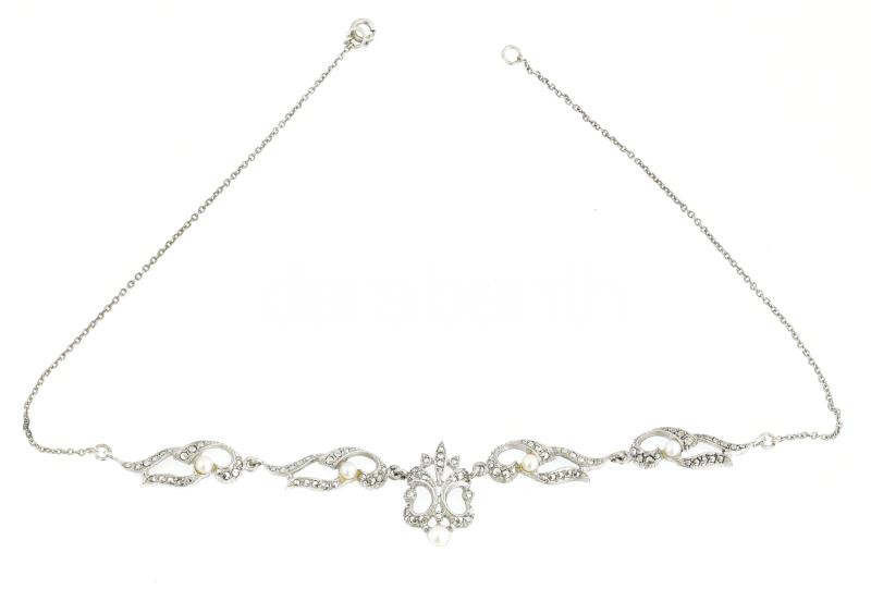 Ezüst(Ag) gyöngyös, markazitos nyakék, jelzett, h: 43,5 cm, bruttó: 14... https://www.darabanth.com/de/444-Fernauktion/444.0/Juwellen-und-Kunstobjekte-aus-Edelmetall/Juwellen-und-Kunstobjekte-aus-Edelmetall~1500028/EzustAg-gyongyos-markazitos-nyakek-jelzett-h-43-5-cm-brutto-14-g~II2926943