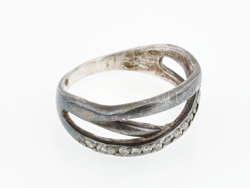 Beschreibung: Ezüst(Ag) gyűrű strasszokkal kirakva, jelzett, méret: 57, bruttó: 3,5 g