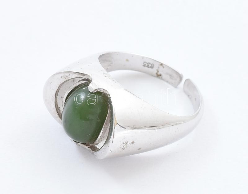 Beschreibung: Ezüst(Ag) gyűrű zöld kővel, jelzett, állítható méret: 54, bruttó: 5,8 g