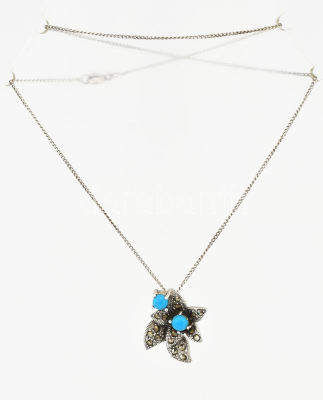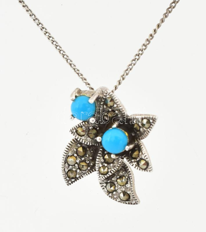 Beschreibung: Ezüst(Ag) lánc türkizes medállal, jelzett, h: 40 cm, bruttó: 6,6 g