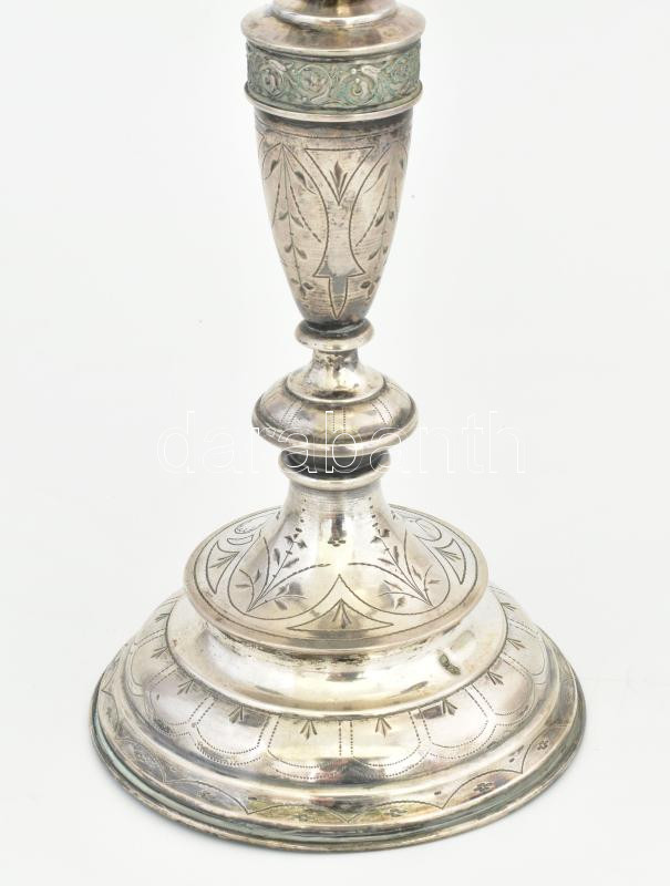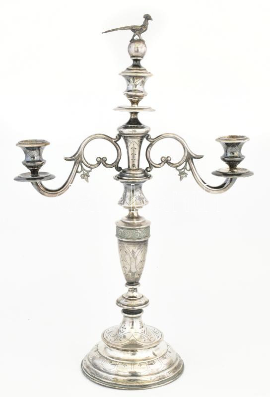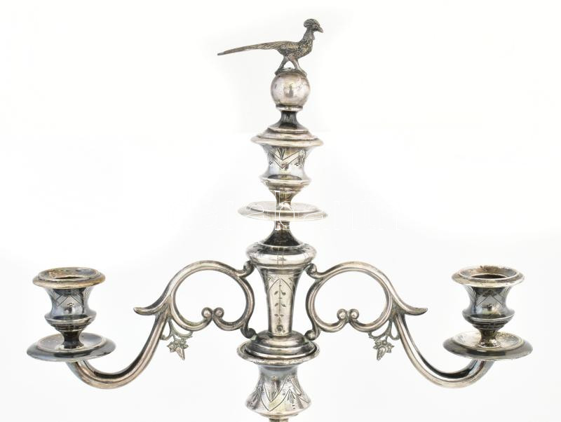 Beschreibung: Fácános ezüst (Ag) gyertyatartó. Jelzett, dianás jelzéssel, mesterjeggyel. Két részes. Össz: 575 g 48 cm