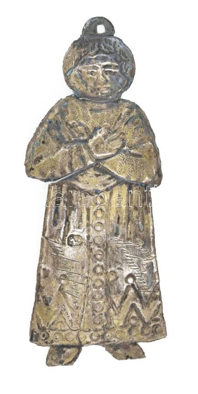 Beschreibung: Nőt ábrázoló ezüst (Ag) medál poncolt, feliratos 4,4 g 9 cm