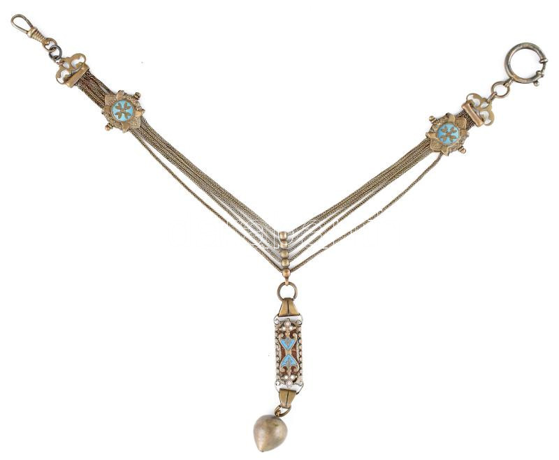 Antik óralánc, zománcos ornamentikával, h: 33 cm https://www.darabanth.com/de/444-Fernauktion/444.0/Kunst-Dokumente-andere-Sammelgebiete/Antik~500010/Antik-oralanc-zomancos-ornamentikaval-h-33-cm~II2778167