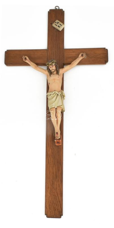 Beschreibung: Fa feszület, festett gipsz korpusszal, 70x35 cm, kis kopással