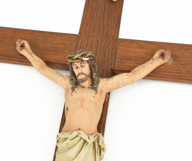 Fa feszület, festett gipsz korpusszal, 70x35 cm, kis kopással https://www.darabanth.com/de/444-Fernauktion/444.0/Kunst-Dokumente-andere-Sammelgebiete/Antik~500010/Fa-feszulet-festett-gipsz-korpusszal-70x35-cm-kis-kopassal~II2934701