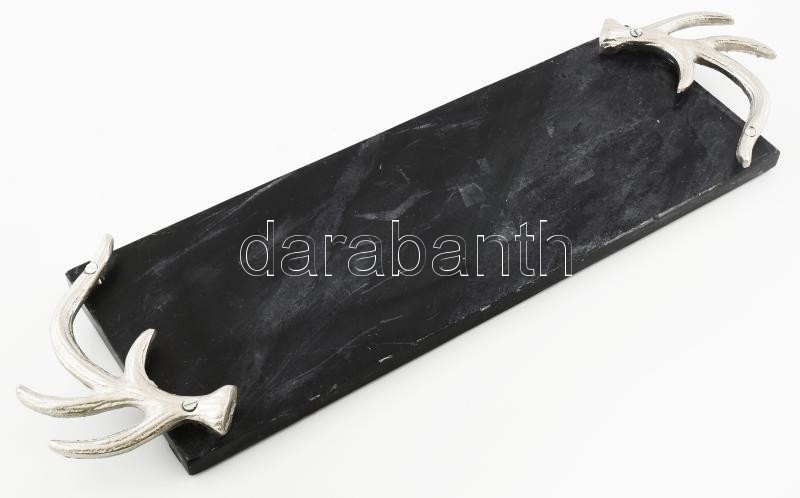 Beschreibung: Márvány tálaló, agancs alakú fém fogókkal, jelzés nélkül, kopással, 58x16 cm
