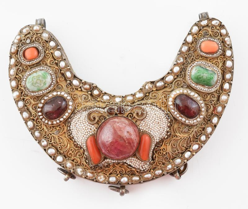 Nagy méretű nyakék dísz, medál szent szoborhoz Tibet/Sziám XIX./XX. sz... https://www.darabanth.com/de/444-Fernauktion/444.0/Kunst-Dokumente-andere-Sammelgebiete/Antik~500010/Nagy-meretu-nyakek-disz-medal-szent-szoborhoz-TibetSziam-XIXXX-sz-Ezust-es-rez-alapon~II2929892