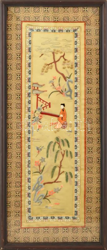 Távol-keleti hímzett selyem kép, XX. sz. Üvegezett fakeretben, 58×24 c... https://www.darabanth.com/de/444-Fernauktion/444.0/Kunst-Dokumente-andere-Sammelgebiete/Antik~500010/Tavol-keleti-himzett-selyem-kep-XX-sz-Uvegezett-fakeretben-58C39724-cm~II2908748