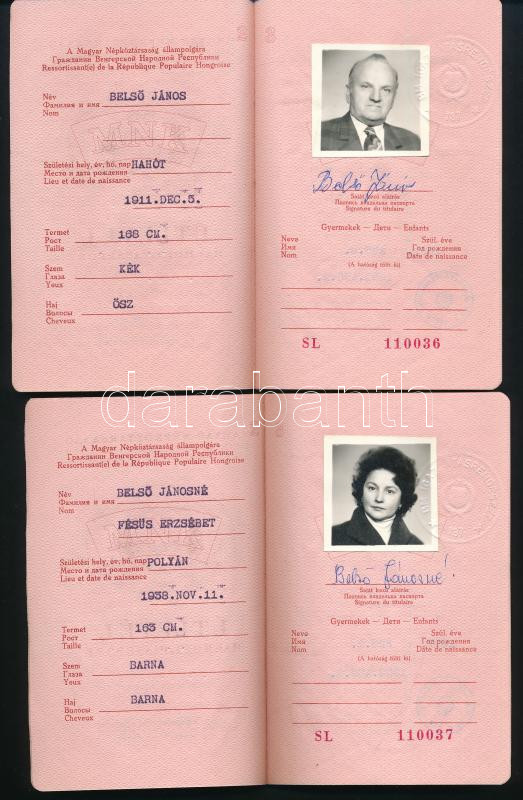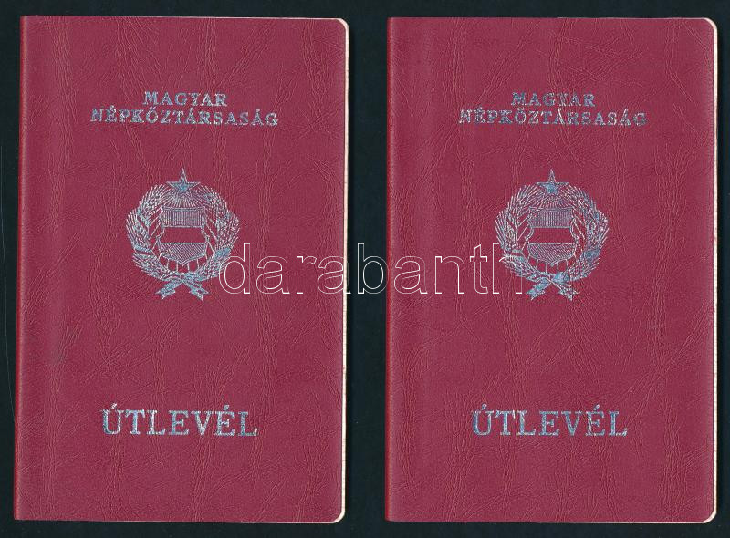 1982 A Magyar Népköztársaság által kiállított 2 db fényképes útlevél h... https://www.darabanth.com/de/444-Fernauktion/444.0/Kunst-Dokumente-andere-Sammelgebiete/Dokument~500022/1982-A-Magyar-Nepkoztarsasag-altal-kiallitott-2-db-fenykepes-utlevel-hazaspar-szamara~II2928556