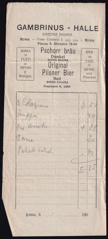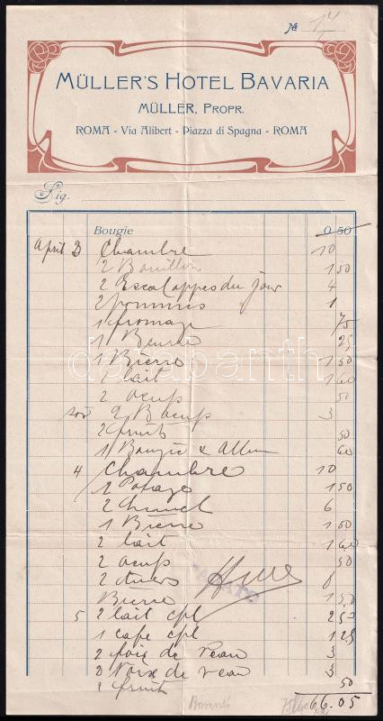 cca 1900-1910 Róma, 2 db fejléces számla, szálloda és sörfőzde (Müller... https://www.darabanth.com/de/444-Fernauktion/444.0/Kunst-Dokumente-andere-Sammelgebiete/Dokument~500022/cca-1900-1910-Roma-2-db-fejleces-szamla-szalloda-es-sorfozde-Mullers-Hotel-Bavaria-Gamb~II2928226