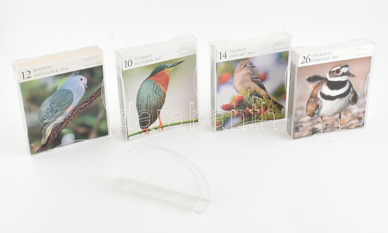 Beschreibung: 720 db madaras naptár, latn nevek, mind klf. 4 évnyi naptár, tartóval. 20x14 cm