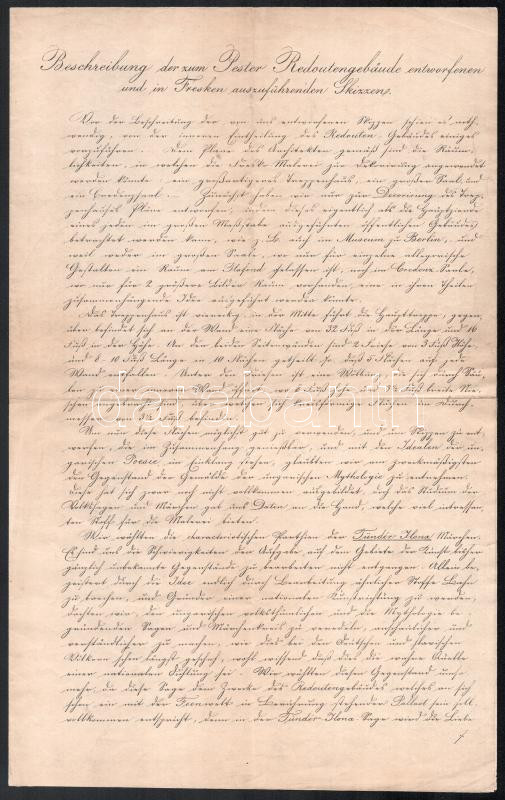 cca 1860 Than Mór - Lotz Károly: A Pesti Vigadó épületébe tervezett freskók vázlatának leírása (Beschreibung der zum Pester Redoutengebäude entworfenen und in Fresken auszuführenden Skizzen). Német nyelvű, kőnyomatos sokszorosított irat, 2 sztl. lev.