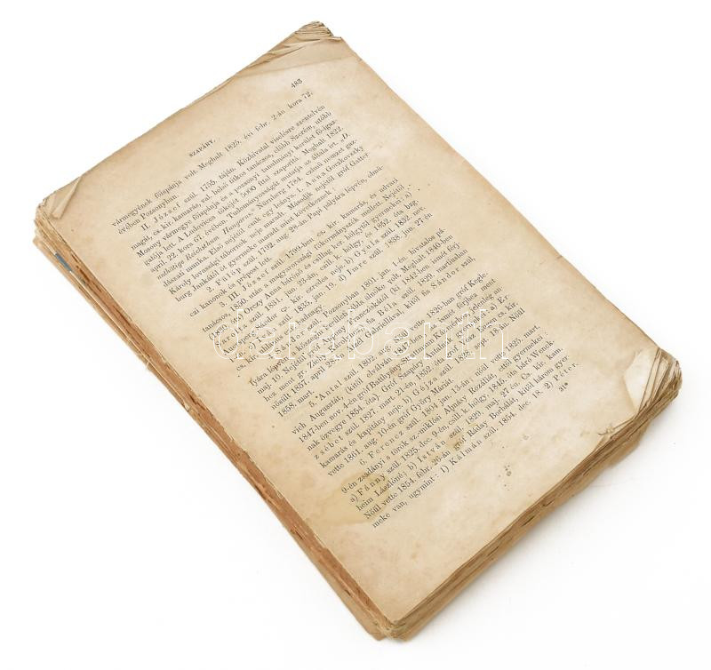 cca 1870 Könyvtöredék. , 483- 798 oldal. Magyar családtörténet. Szapáry családtól Szombathy családig. Nagy Iván: Magyarország családai czimerekkel c. munkájából.