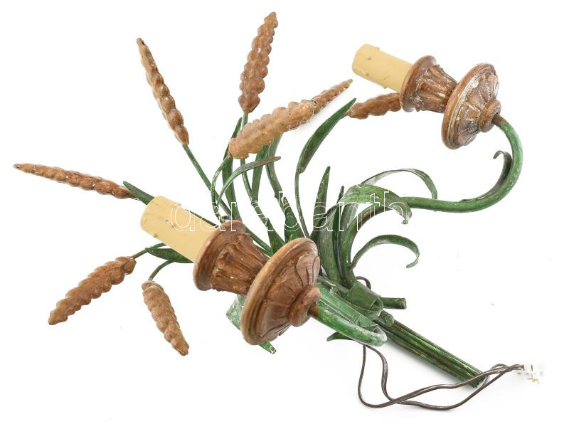 Búzakalász formájú falilámpa. Kétágú, gyertyaizzós. Festett fém, fa. K... https://www.darabanth.com/de/444-Fernauktion/444.0/Kunst-Dokumente-andere-Sammelgebiete/Flohmarkt~500016/Buzakalasz-formaju-falilampa-Ketagu-gyertyaizzos-Festett-fem-fa-Kopasnyomokkal-ninc~II2934923
