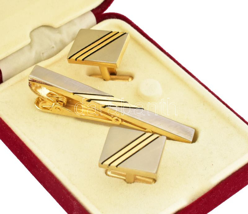 Beschreibung: Mandzsetta és nyakkendőtű szett eredeti dobozában