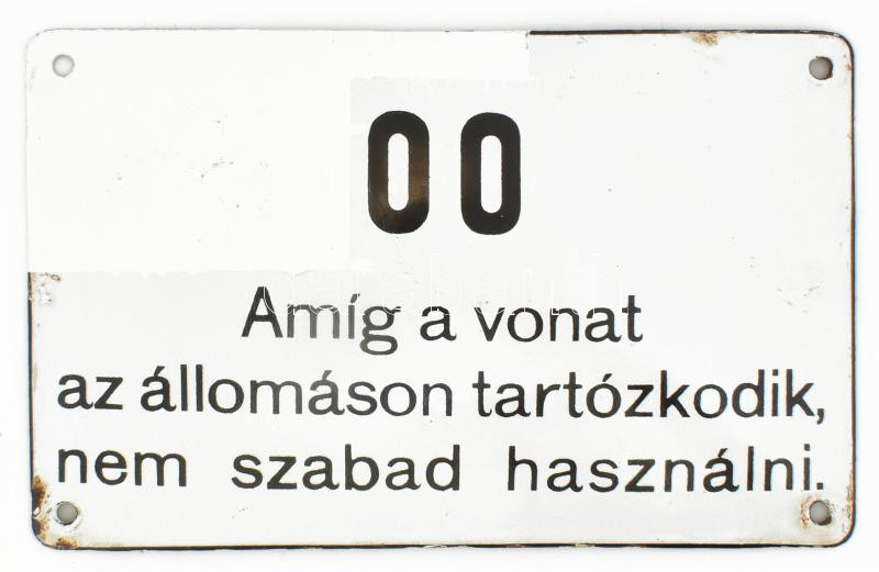 Régi zománctábla, "Amíg a vonat az állomáson tartózkodik, nem sza... https://www.darabanth.com/de/444-Fernauktion/444.0/Kunst-Dokumente-andere-Sammelgebiete/Flohmarkt~500016/Regi-zomanctabla-Amig-a-vonat-az-allomason-tartozkodik-nem-szabad-hasznalni-Javitott-~II2931301