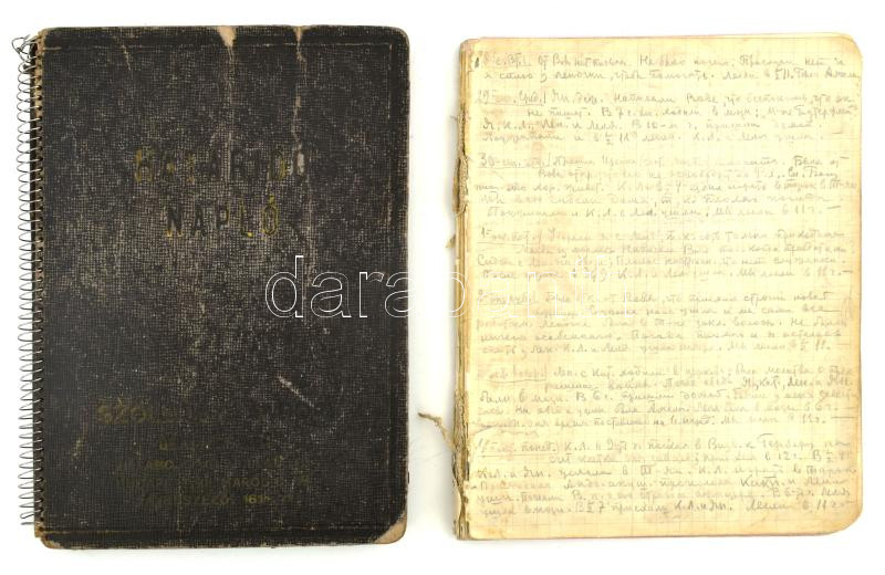 Beschreibung: 1956-ból 2 DB Oroszul, kézzel írott napló, részletes bejegyzésekkel.