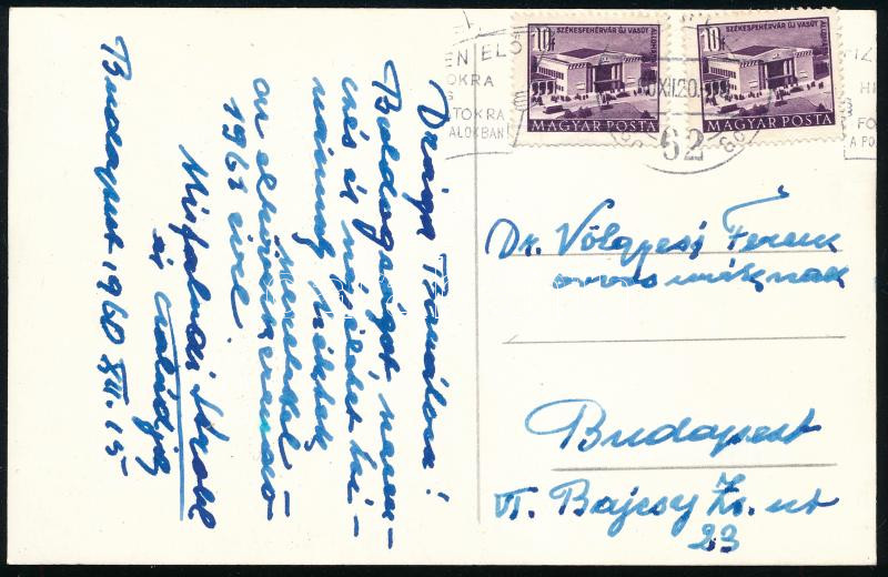 1961 Kisfaludy Stróbl Zsigmond (1884-1975) szobrászművész autográf újévi üdvözlő sorai, aláírással Völgyesi Ferenc (1895-1967) orvos, pszichiáter és hipnotizőr részére.
