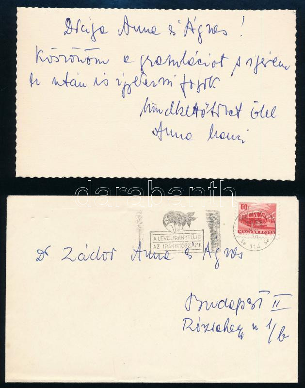 1975 Anna Margit (1913-1991) festőművész, Ámos Imre festőművész feleségének köszönő sorai képeslapon Zádor Anna (1904-1995) Kossuth-díjas művészettörténész és Ágnes (Zádor Ágnes?) részére