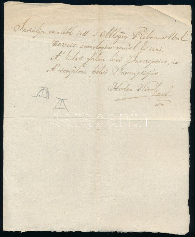 Hodor Károly (1796-1881), Doboka vármegye táblabírája, történetkutató autográf sorai és aláírása