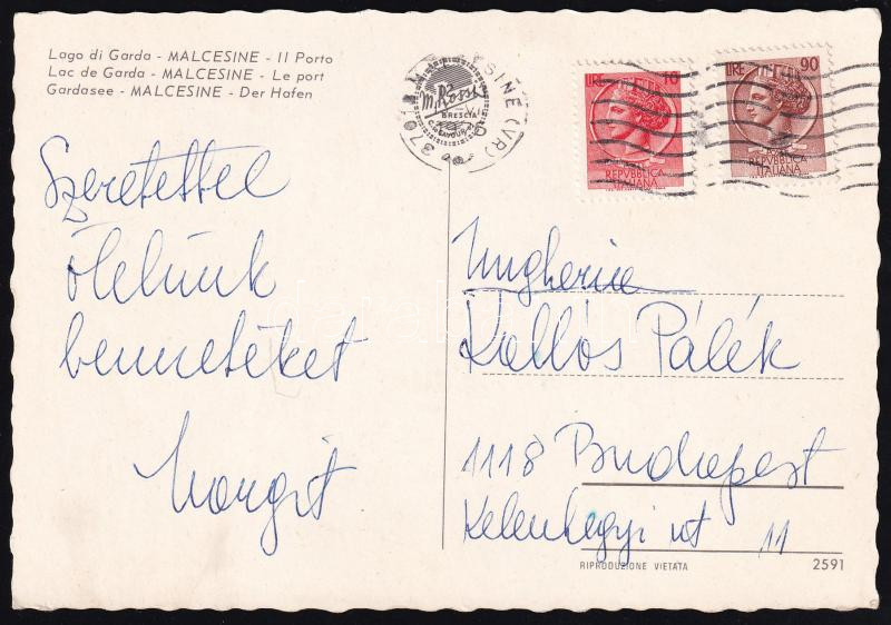 Kovács Margit (1902-1977) Kossuth-díjas keramikus autográf üdvözlő sorai Olaszországból, aláírással.