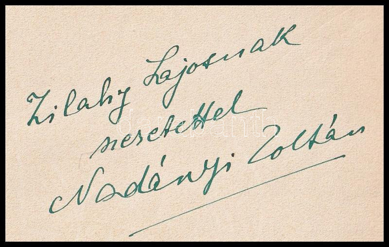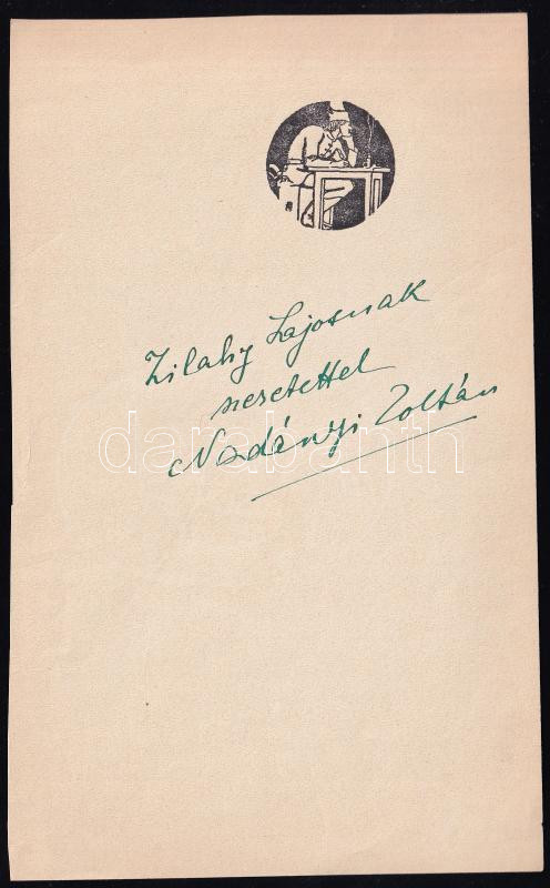 Nadányi Zoltán (1892-1955) költő, író, műfordító autográf DEDIKÁCIÓJA egy könyvből származó papírlapon, Zilahy Lajos (1891-1974) író, publicista, filmrendező, forgatókönyvíró és producer részére