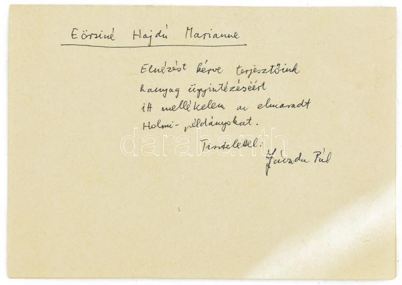 Závada Pál (1954-) Kossuth- és József Attila-díjas szlovák származású író, szerkesztő, szociológus sorai, tiszteletpéldányokat megküldő levélen, aláírással, Eörsiné Hajdu Marianna magyartanár részére,