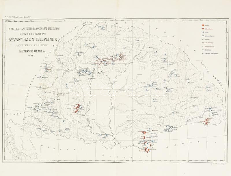 1901 Kalecsinszky Sándor: A magyar Szt. Korona országai területén létező és megvizsgált ásványszén telepeinek átnézetes térképe. Bp., M. Kir. Földtani Intézet (Ny. Grund V. utódai-ny.), 47×61 cm