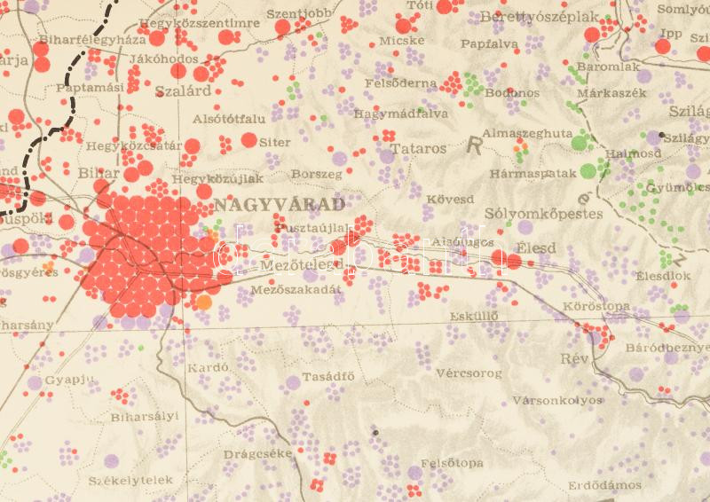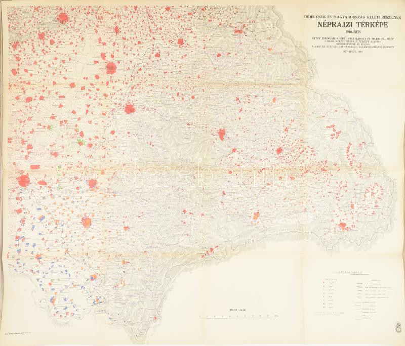 1940 Erdélynek és Magyarország keleti részeinek néprajzi térképe 1910-ben, 1:200 000, Rátky Zsigmond, Kogutowicz Károly, Teleki Pál gróf, Magyar Statisztikai Társaság Államtudományi Intézete, 85×106 cm