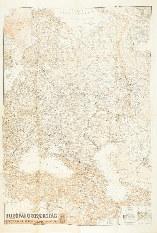 Beschreibung: 1942 Európai Oroszország térképe. 1 : 5.000.000. Kiadja a M. Kir. Honvéd Térképészeti Intézet. Hajtva, 93x62,5 cm