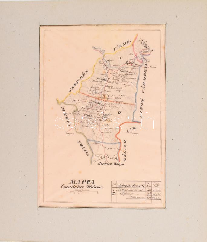 Mappa Comitatus Thurocziensis, Turóc vármegye térképe. XIX. sz vége. Kézzel rajzolt. hártyapapíron 24x30 cm / Map of Csallóköz Schütt county hand drawn