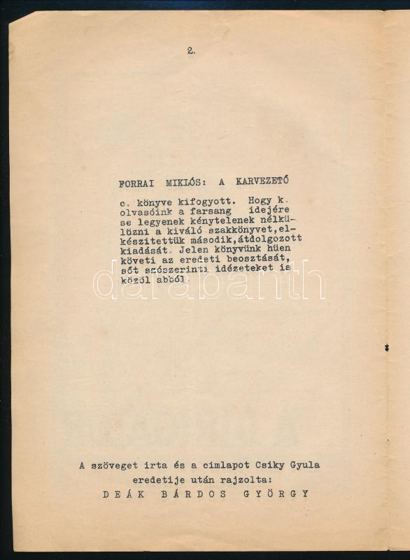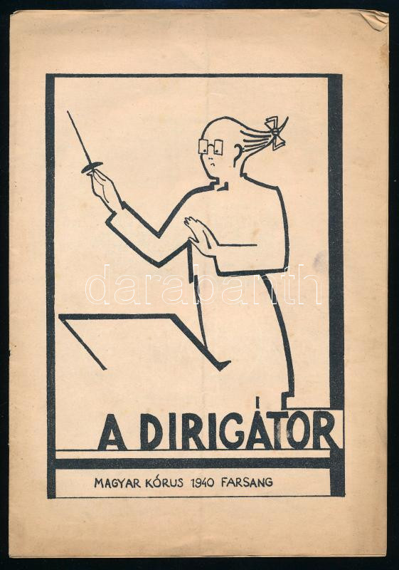 1940 A dirigátor. Magyar Kórus 1940 farsang. A szöveget írta és a címlapot rajzolta: Deák Bárdos György. Bp., Jatzkó és Gáti-ny., 12 p. Fűzés nélkül.
