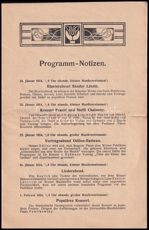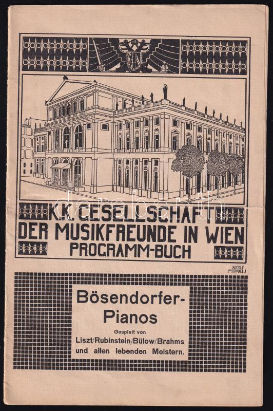 cca 1910 Musikfreunde Bösendorfer koncertműsor Moradelli grafikával benne magyar zenészek