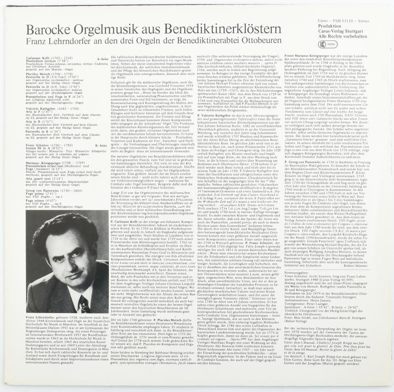 Franz Lehrndorfer - Barocke Orgelmusik Aus Benediktinerklöstern (Franz Lehrndorfer An Den Drei Orgeln Der Benediktinerabtei Ottobeuren)