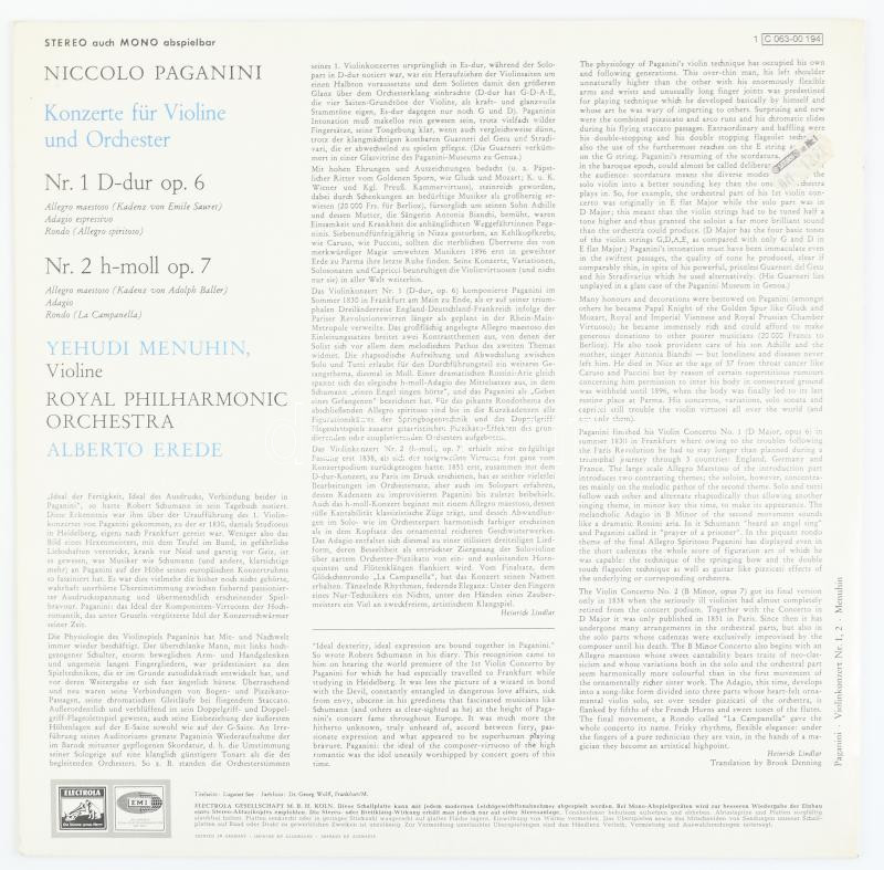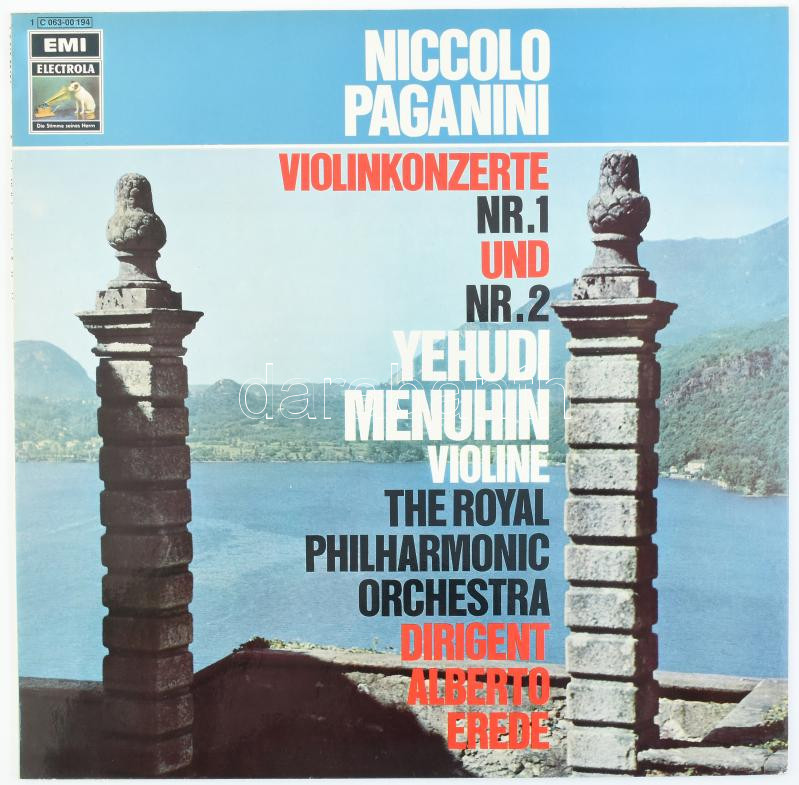 Niccol? Paganini, Yehudi Menuhin, The Royal Philharmonic Orchestra Dirigent Alberto Erede - Violinkonzerte Nr.1 Und Nr. 2. Vinyl lemez, LP, EMI Electrola - 1 C 063-00 194, Németország/Germany