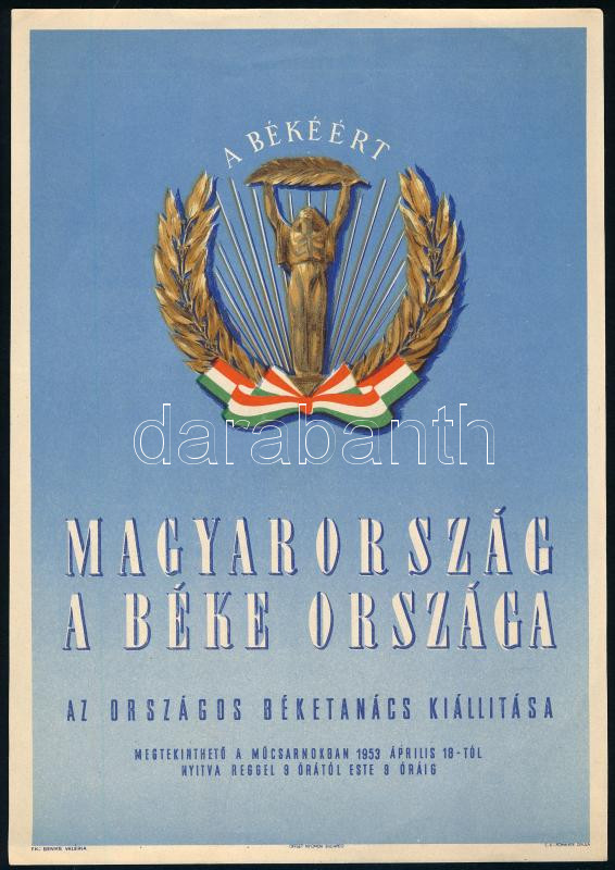 1953 Magyarország a béke országa - az Országos Béketanács kiállítása, ... https://www.darabanth.com/de/444-Fernauktion/444.0/Kunst-Dokumente-andere-Sammelgebiete/Plakat~1500008/1953-Magyarorszag-a-beke-orszaga-az-Orszagos-Beketanacs-kiallitasa-kisplakat-24C39716-5-~II2930330