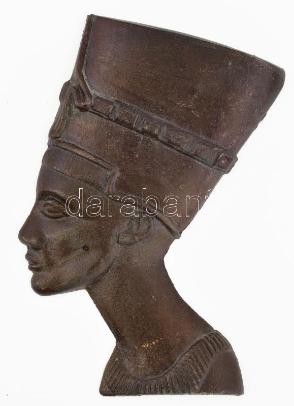 Egyiptomi fej, falidísz, festett fém, jelzés nélkül, szép állapotban, m: 19,5 cm