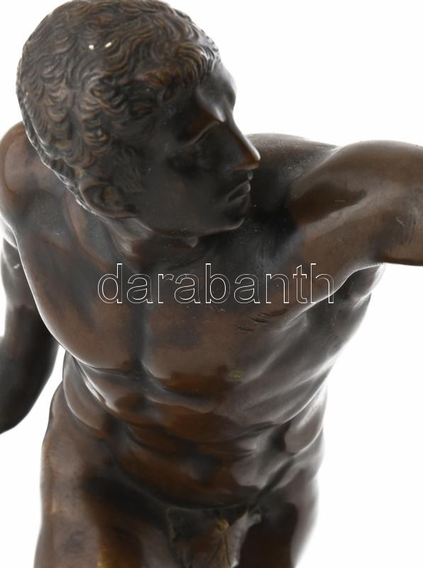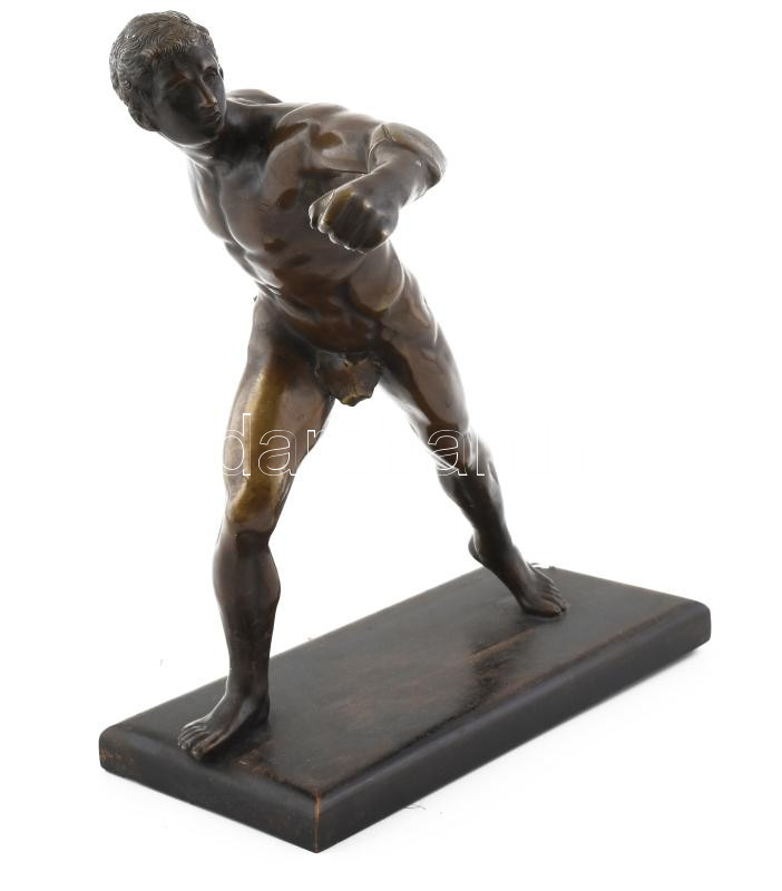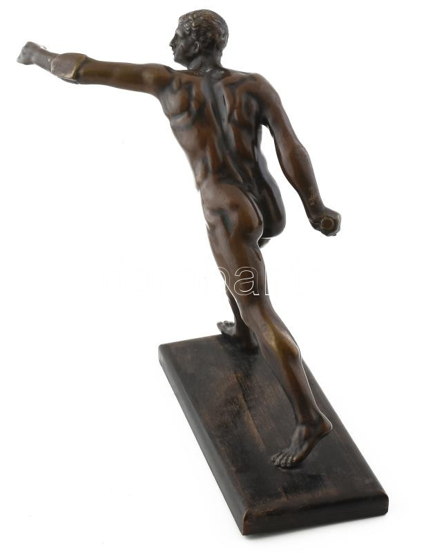Jelzés nélkül: Rohamozó. (Férfi akt). Bronz. Rézlappal borított fa talapzaton. XX: sz. eleje. m: 30 cm Kard letörött