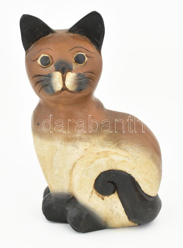 Macska, festett faragott fa, jelzés nélkül, minimális kopással, m: 20,5 cm