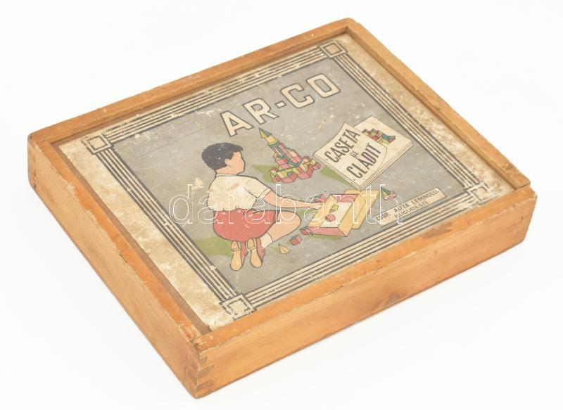 Ar-Co román építőjáték fa doboza 20x25 cm / Romaiat toy box https://www.darabanth.com/de/444-Fernauktion/444.0/Kunst-Dokumente-andere-Sammelgebiete/Spielzeuge~500017/Ar-Co-roman-epitojatek-fa-doboza-20x25-cm-Romaiat-toy-box~II2925511