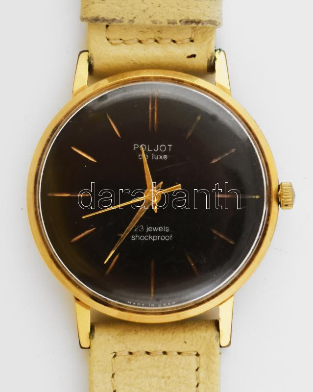 Poljot fekete számlapos karóra. Kézi felhúzós szerkezettel. Jelzett, m... https://www.darabanth.com/de/444-Fernauktion/444.0/Kunst-Dokumente-andere-Sammelgebiete/Uhren~500013/Poljot-fekete-szamlapos-karora-Kezi-felhuzos-szerkezettel-Jelzett-mukodik-bor-szijjal-~II2934882